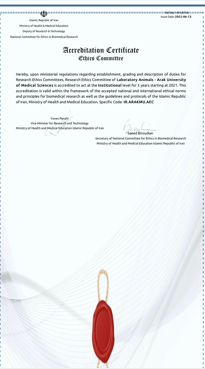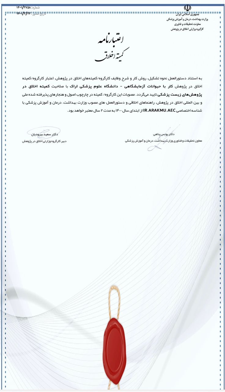 اخذ اعتبار نامه کمیته اخلاق در پژوهش کار با حیوانات آزمایشگاهی برای دانشگاه علوم پزشکی اراک ۰۱ تیر ۱۴۰۱ | ۰۷:۲۲ کد : ۲۷۲۴۶ اطلاعیه ارسال به دیگران نام شما ایمیل شما ایمیل دریافتکننده ارسال انصراف تعداد بازدید:۱۷۸۰۸