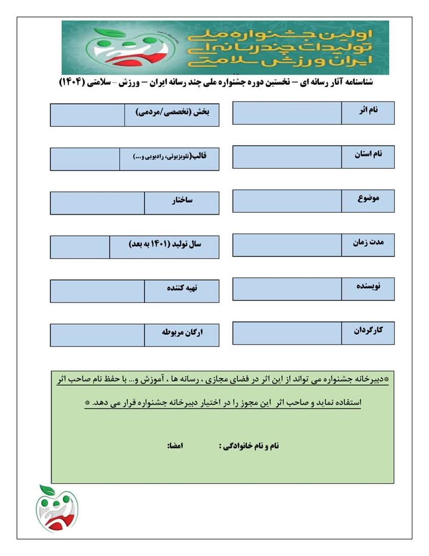 برگزاری اولین جشنواره ملی تولیدات چند رسانه ای با شعار ایران ، ورزش ، سلامت